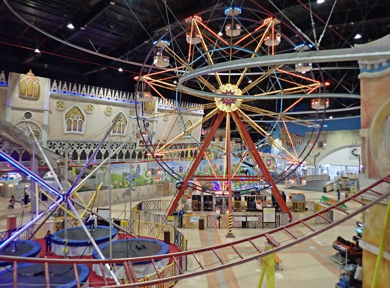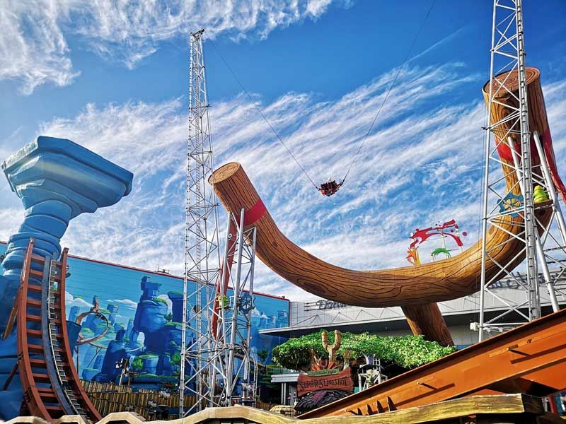 Малыши могут покататься на колесе обозрения, исследовать Dino Land или погонять на машинках, а подростки и взрослые — на американских горках, водном аттракционе и башне свободного падения.