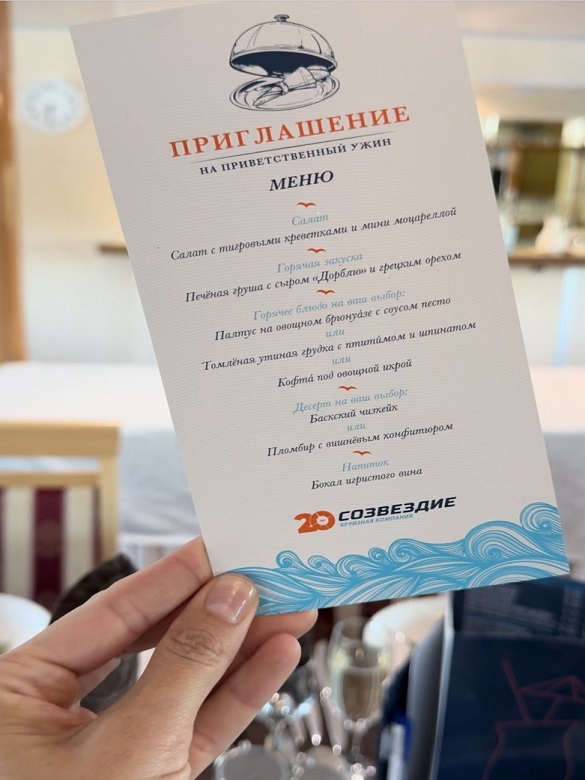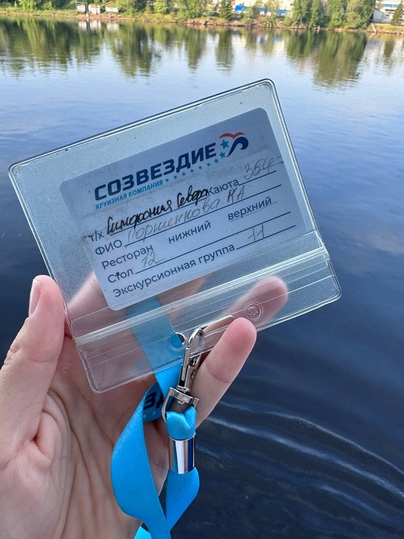 На ресепшен каждый получил ключи от каюты, электронные бейджи с номером экскурсионной группы и номером столика в ресторане, где на теплоходе проходят завтраки, обеды и ужины.