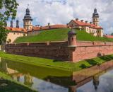 Получасовой переезд в НЕСВИЖ — бывшую столицу ординации князей Радзивиллов www.niasvizh.by. На Рыночной площади этого живописного городка сохранилась ратуша, старинные торговые ряды, дома ремесленников; рядом — Слуцкая брама (городские ворота XVII в.). Осмотр ДВОРЦОВО-ПАРКОВОГО КОМПЛЕКСА XVI-XVIII веков, построенного Николаем Кшиштофом Радзивиллом "Сироткой" (архитектор Д. М. Бернардони), окруженного высокими земляными валами и обширными прудами. В его архитектуре переплетаются элементы ренессанса, барокко и классицизма. Величественный замок-дворец представляет собой систему соединенных в единый ансамбль зданий, образующих изящный парадный двор. Осмотр впечатляющих экспозиций в дворцовом комплексе — парадные залы дворца (Охотничий, Бальный, Портретный, Каминный, Золотой и др.), жилые и хозяйственные помещения. Прогулка по живописным ПАРКАМ, примыкающим к замку. Знакомство с ФАРНЫМ КОСТЕЛОМ (1593 г., архитектор Д. М. Бернардони): великолепные фрески храма, находящаяся в подземелье КРИПТА — фамильная усыпальница Радзивиллов — ставят эту святыню в число наиболее ценных в Беларуси. Экскурсия повествует об истории династии Радзивиллов — одного из самых влиятельных родов Великого княжества Литовского и Речи Посполитой, оставивших глубокий след в культурном наследии белорусского народа и всей европейской цивилизации… Возвращение в Минск около 19.30.